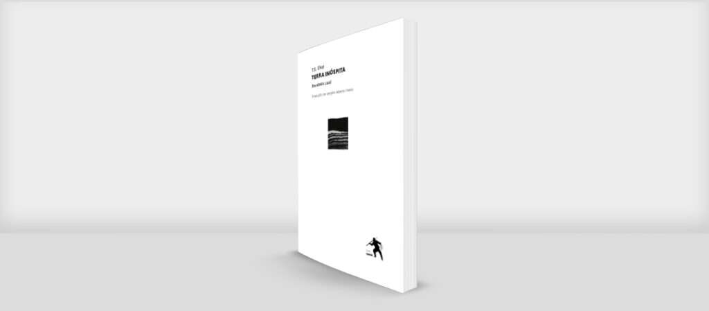 • Livro de capa branca 'TERRA INCÓSPITA' com imagem preta e figura humana