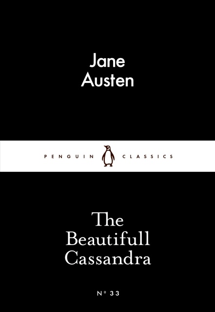 Capa preta de livro com título The Beautifull Cassandra de Jane Austen e logotipo Penguin Classics