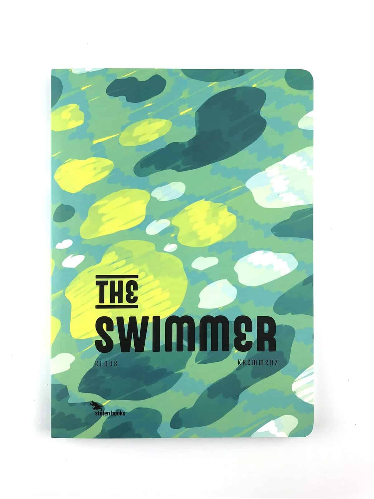 • Caderno com capa padrão verde e texto preto THE SWIMMER