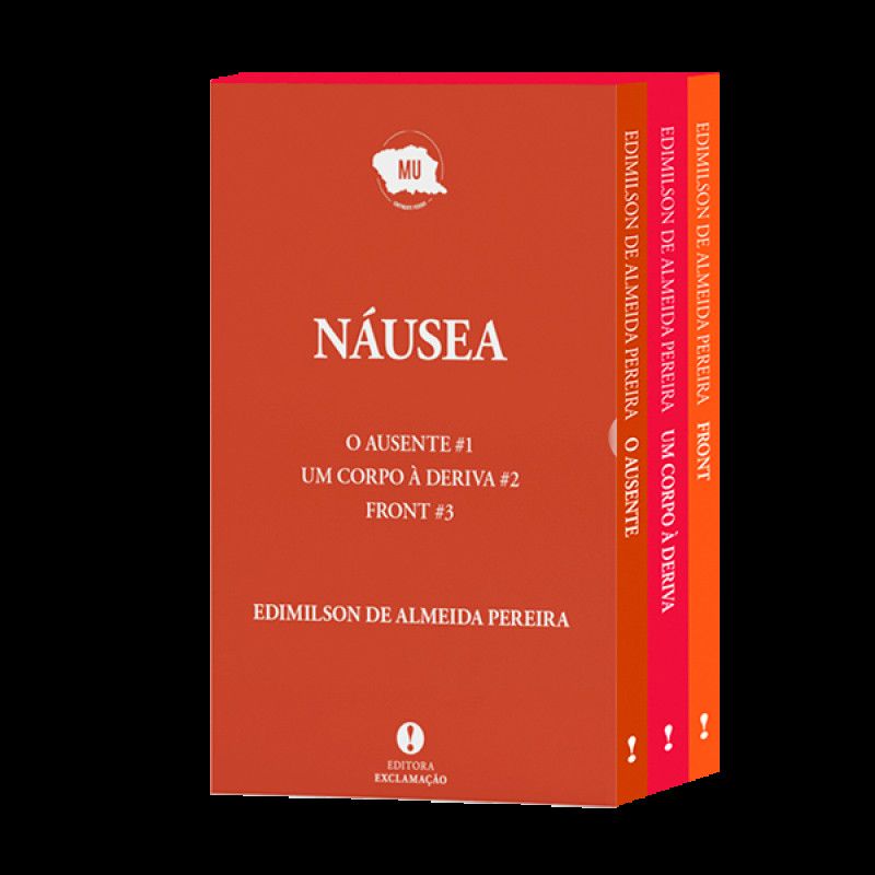Caixa arquivadora Trilogia “Náusea”, contém os livros: O Ausente; Um Corpo à Deriva; Front.A Trilogia Náusea, constituída pelos romances O Ausente, Um Corpo à Deriva e Front, evoca a perspectiva existencialista de Jean-Paul Sartre ao enfatizar a ação fundamentada na responsabilidade e o princípio de que o sujeito é aquilo que escolhe se tornar. É, portanto, como captura do ato filosófico – pensamento e movimento simultâneos – que as narrativas subvertem o viés da linearidade para revelar personagens comprometidos em desvendar os sentidos subliminares daquilo que, tantas vezes, é enunciado de maneira banal nas tramas da vida cotidiana.