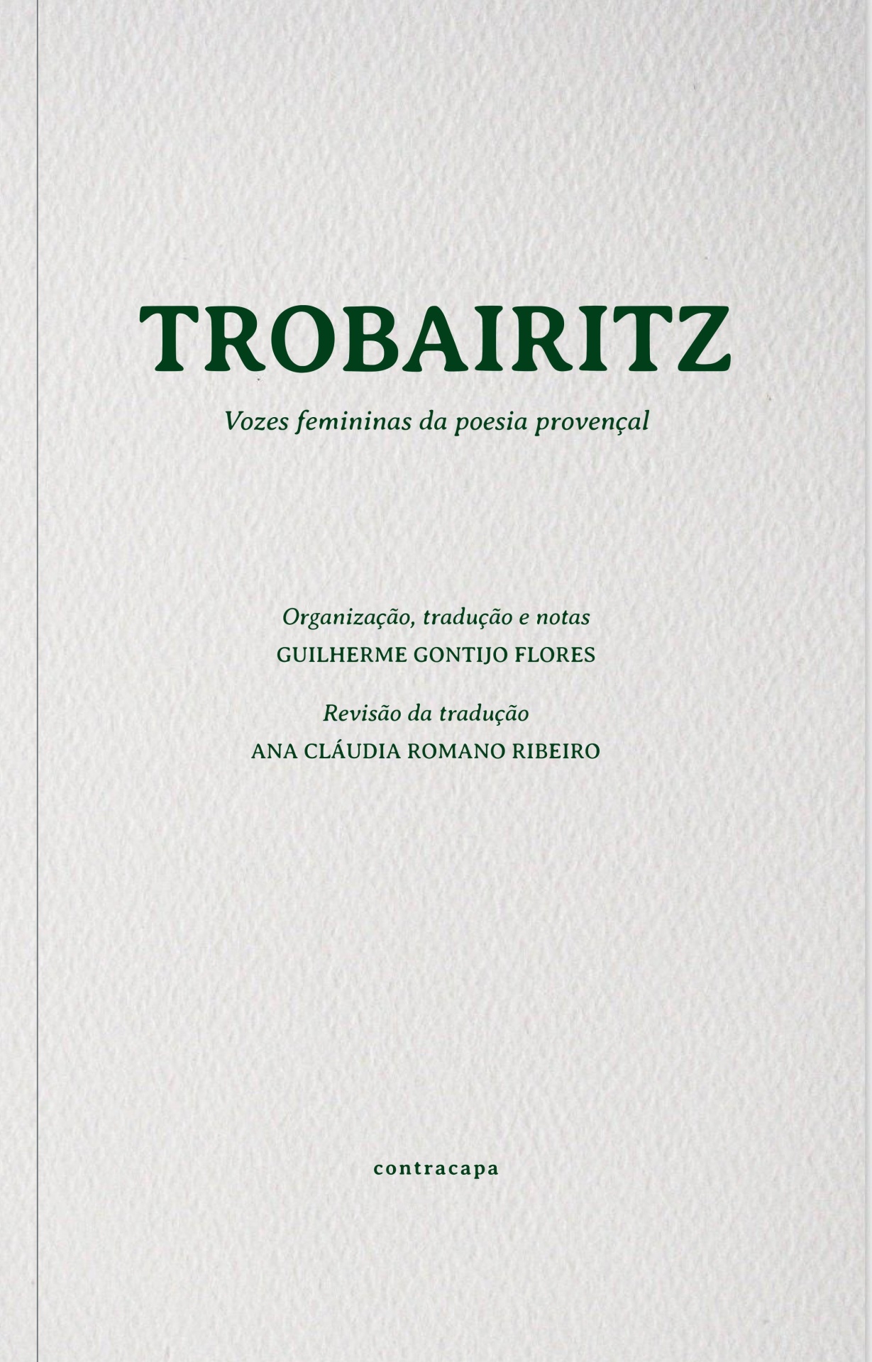 Trobairitz 8,00 € Desconto de %. IVA incluído. Partilhar Comprar Contactar Trobairitzvozes femininas da poesia provençal(várias autoras) tradução e notas de Guilherme Gontijo Flores 132 págs. Tags Contracapaguilherme gontijo flores2023Antologias