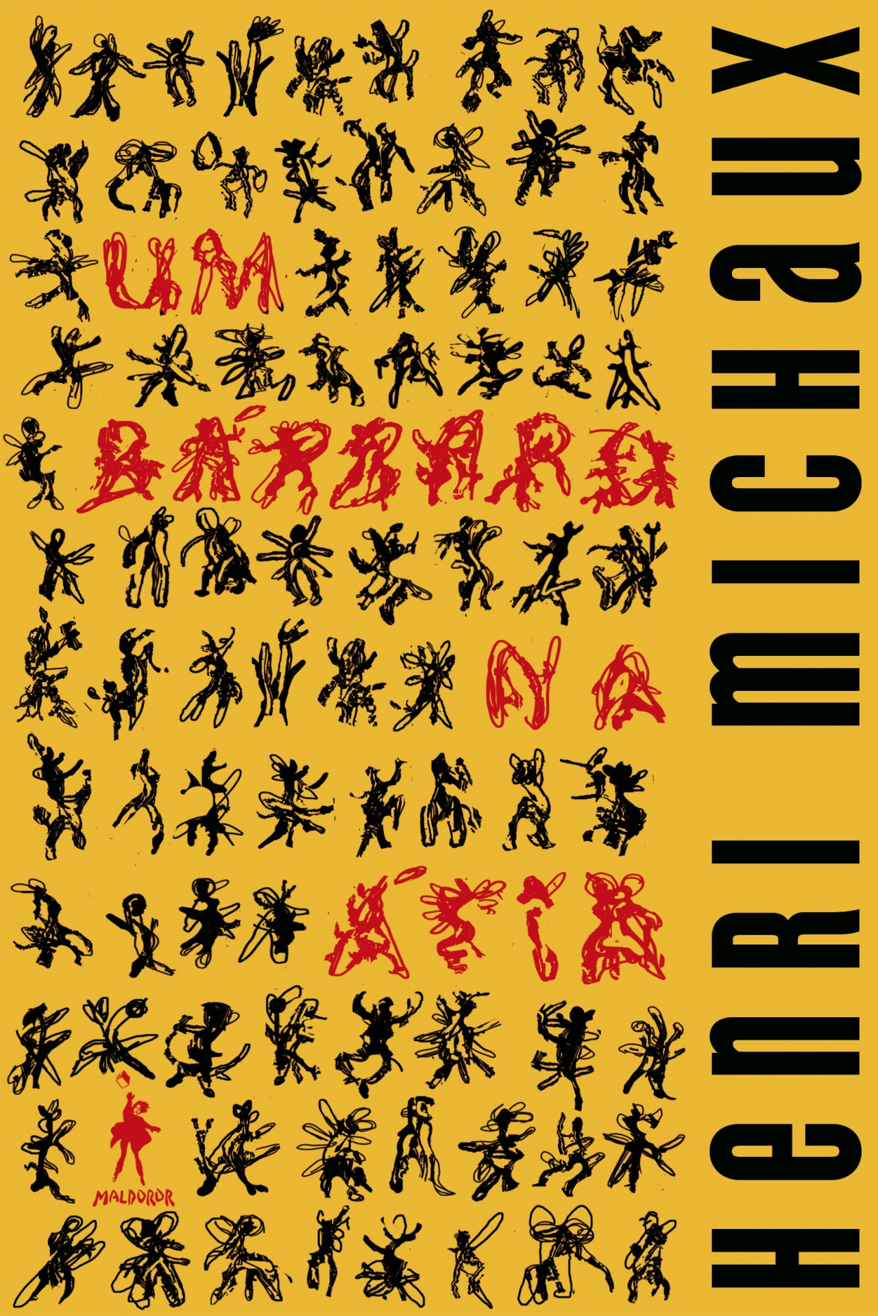 • Capa de álbum com figuras humanas negras estilizadas e texto 'UM BARBARO NA ARTE' e 'HENRI MICHAUX' sobre fundo amarelo