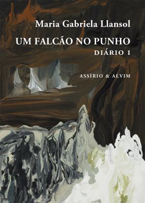 • Capa de livro 'UM FALCÃO NO PUNHO DIÁRIO I' de Maria Gabriela Llansol, fundo artístico abstrato em cores escuras e claras.