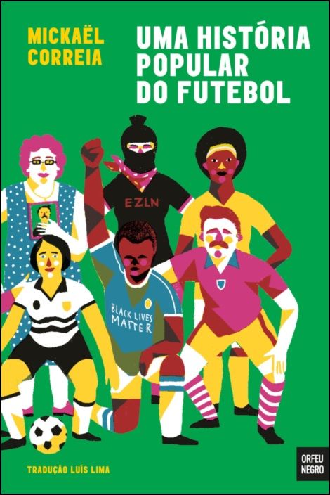 Capa do livro 'Uma História Popular do Futebol' de Mickaël Correia com ilustração colorida de jogadores e texto em verde