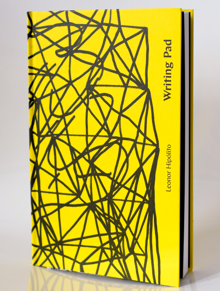 Bloco de notas amarelo com linhas pretas e texto Writing Pad Leonor Hipólito